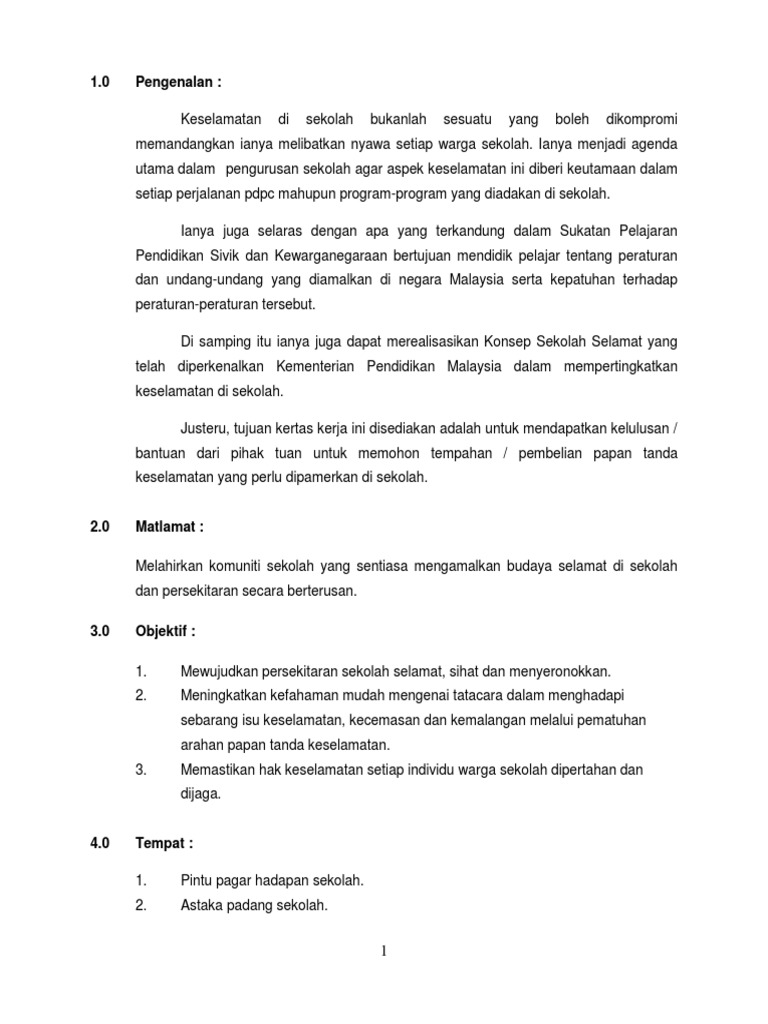Kertas Kerja Pembelian Papan Tanda Keselamatan Sekolah 2018 Pdf